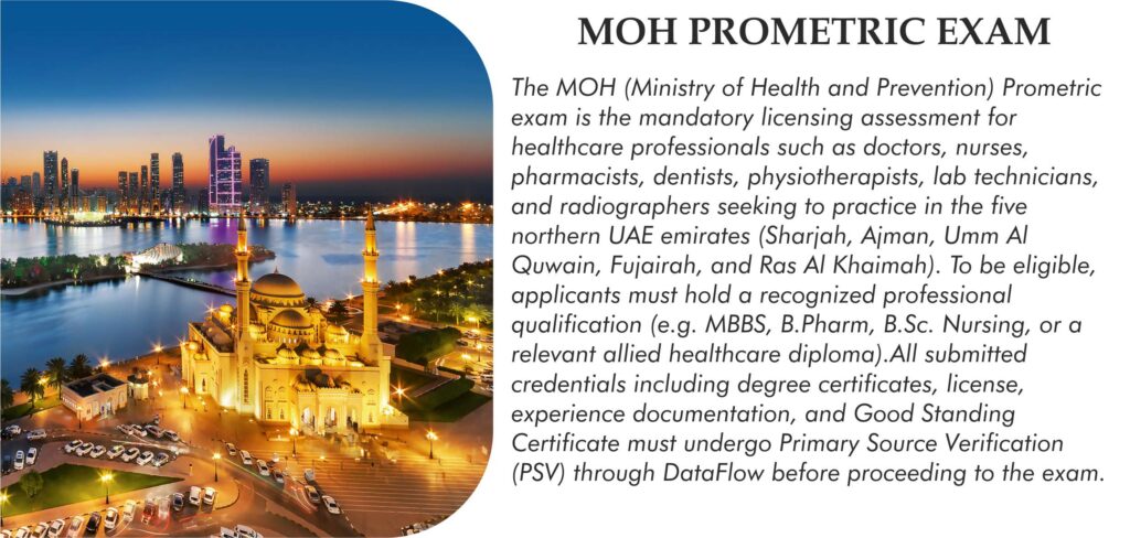 3. Prometric Exam Booking – Scheduling and appearing for the required Prometric examination.